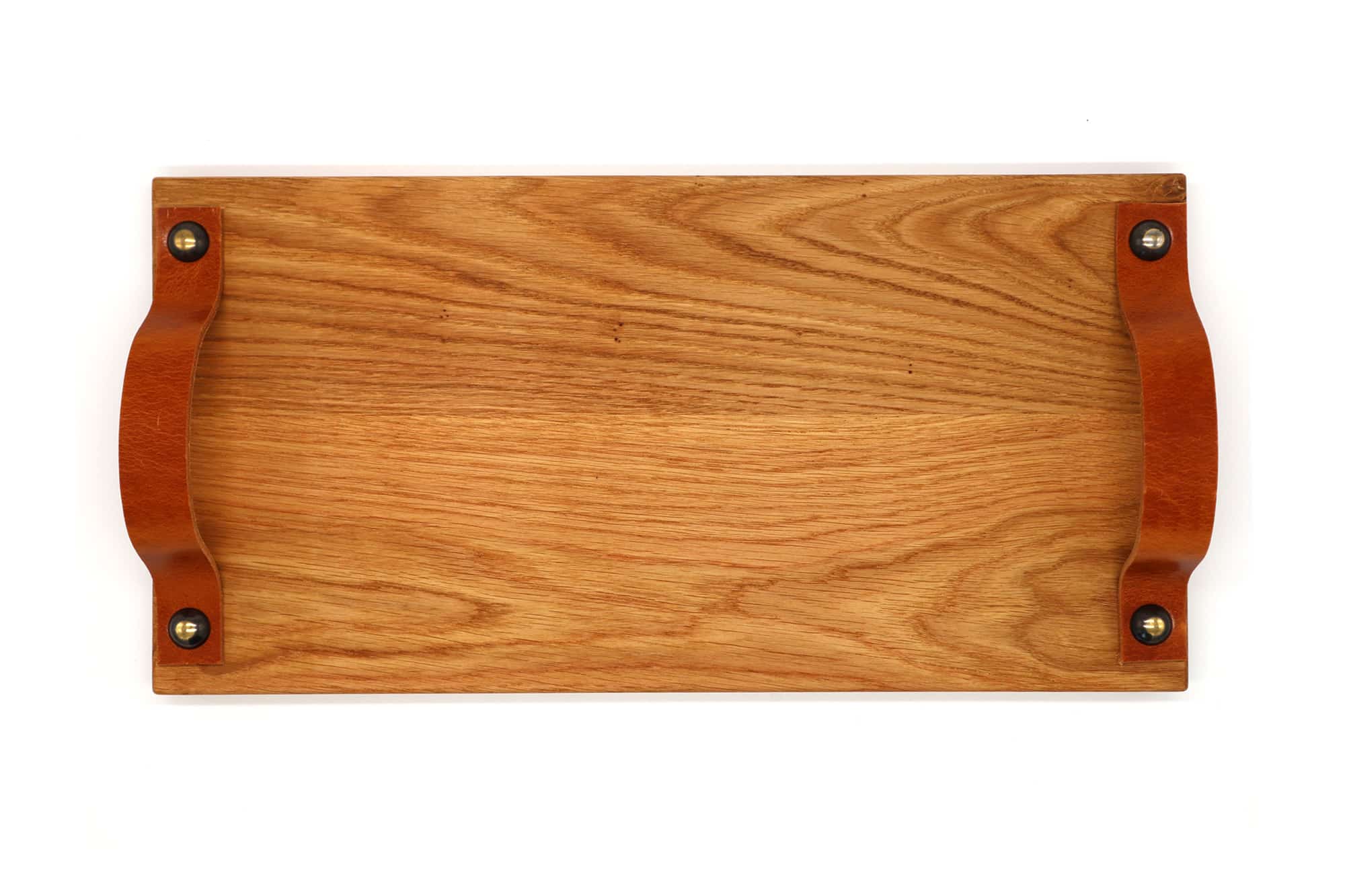 Kleine eiken borrelplank met leren handvaten